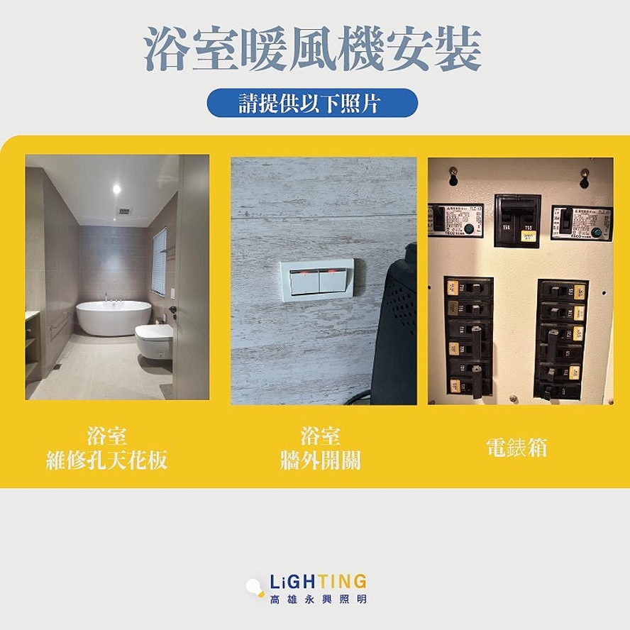 *暖風機請拍浴室現場照片以供評估機型