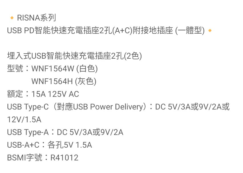 國際牌 RISNA 系列 USB PD TypeC 插座 智能快充 WNF 1564 高雄永興照明