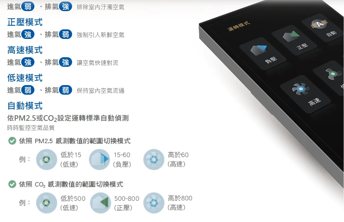 【台達電子】DC直流變頻全熱交換器+智慧控制面板 VEB150AT VEB250AT VEB350AT