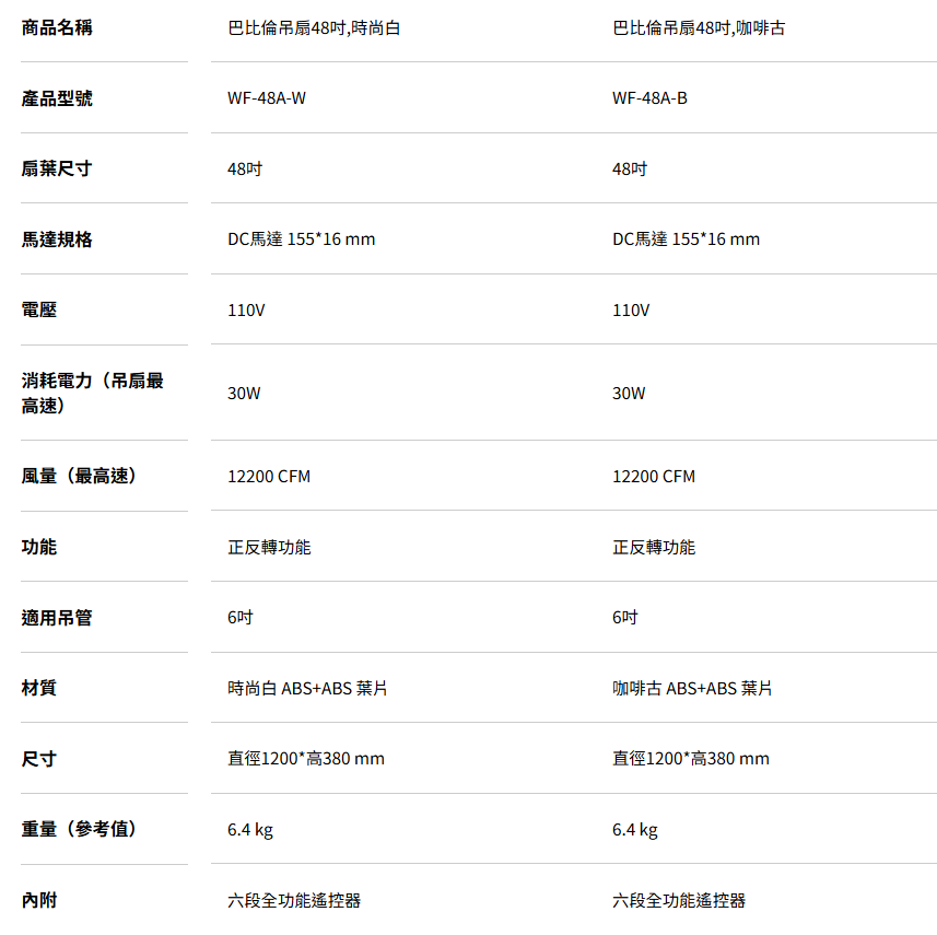 楓光 48吋 巴比倫吊扇 DC扇 時尚白 WF-48A-W 咖啡古 WF-48A-B 高雄永興生活居家館