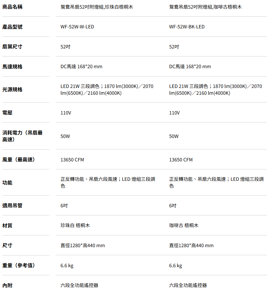 楓光 52吋鴛鴦吊扇 附燈組 DC扇 WF-52W-W-LED WF-52W-BK-LED 高雄永興生活居家館