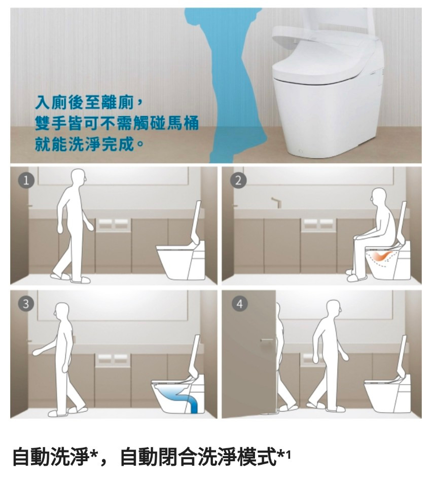 - 自動掀蓋與自動閉合洗淨 (僅Type1機型)