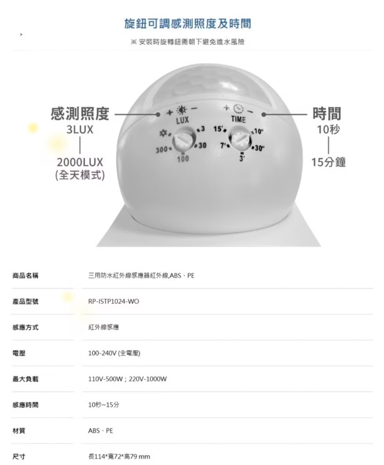 感應時間:10秒~15分
