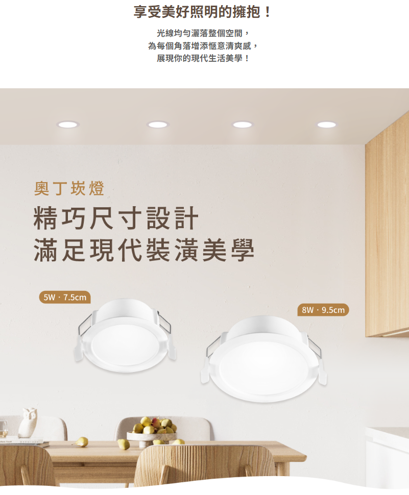 輕巧外型完美呼應現代裝潢風格,從居家到商業空間都能輕鬆駕馭!燈體結合窄邊框設計,自然融入天花板,讓整體視覺更純淨俐落。✦ 基礎照明 160° 發光角度✦ 護眼無頻閃設計,舒適視覺體驗✦ 快速接頭,直接插入安裝便利