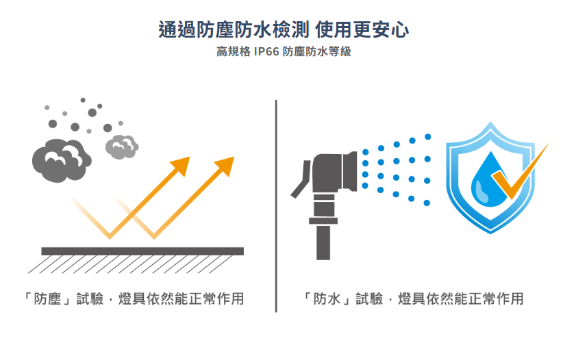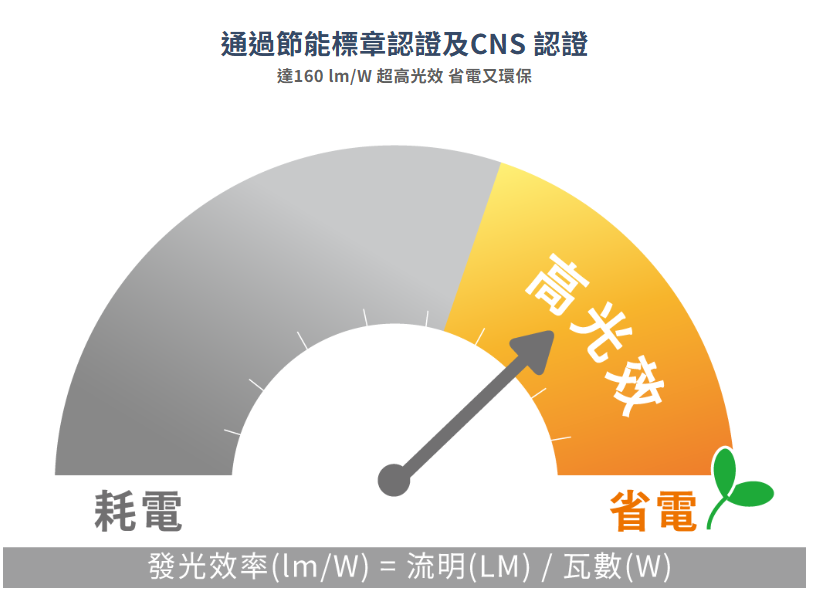 ✦ 通過三項國家認證☑ 天井燈節能標章☑ 國家級CNS認證☑ IP66防塵防水✦ 高散熱壓鑄鋁燈體結構通過60度長期高溫測試適合台灣的炎熱氣候使用✦ 超高光效 160 lm/W不只是超高亮度更是節約能源的超高光效讓宇宙照亮你的世界