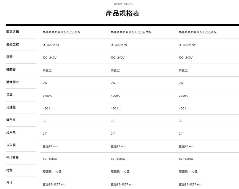 馬修崁燈主打極佳防眩效果蜂巢燈罩設計以及內凹結構讓肉眼不會直視光源有助於減輕雙眼視覺疲勞黑色反射罩使光源投射更精準能減少燈光反射的鏡面效果讓落地窗外的夜景一覽無遺小小的細節就能提升空間質感!✦ 崁入孔7.5/9.5公分✦ 防眩指數UGR≦12