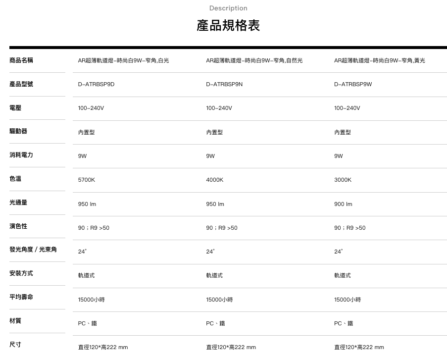 設計師愛用的AR超薄軌道燈,常見於商店、餐廳等各式空間以更小巧的軌道盒設計,呈現精緻優雅的造型之美整體線條更加簡潔流暢,完美契合現代設計風格~✦ 通過國家級CNS認證✦ 無藍光危害風險✦ 超高演色性≧90;R9>50✦ 兩色燈體,搭配空間風格✦ 三種色溫,營造情境氛圍✦ 窄角廣角,滿足多元需求