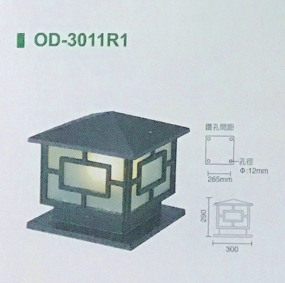 型號:OD-3011R1 砂黑燈體材質: 壓鑄鋁、砂黑烤漆燈罩材質: 霧砂玻璃適用光源: E27燈泡*1(另計)*限裝LED 12W(含)以下尺寸: 30x30x29cm
