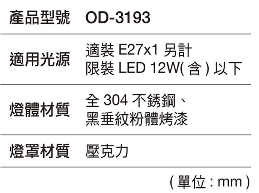 舞光 E27 替換型柱頭燈 OD-3193 高雄永興照明