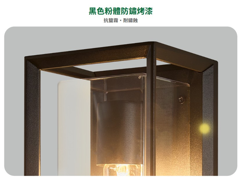 現代工業風設計簍空金屬外框結合透明矩形燈罩打造內外雙層次的視覺效果柔和光暈層層映照於牆面,為陽台、走道等場域增添獨特風格✦ IP55防塵防水等級✦ 通過96小時抗鹽霧測試✦ 適用於陽台、玄關、門廊、走道等✦ 適用直式預埋盒※ 內附光源x1 LED 6.5W燈絲燈