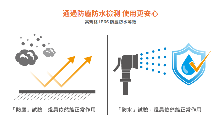 通過 IP66 防水測試,可於戶外使用