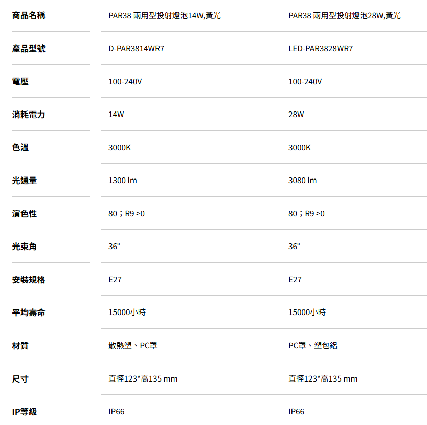 舞光 E27 PAR38 兩用型投射燈泡 黃光 14W 28W D-PAR3814WR7 高雄永興照明