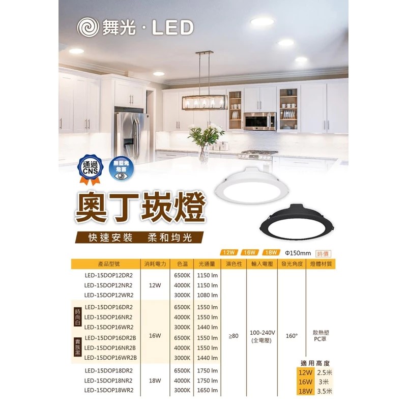 舞光 LED 奧丁崁燈 12W 16W 18W 內含驅動器 崁孔15cm 黑白殼【高雄永興照明】