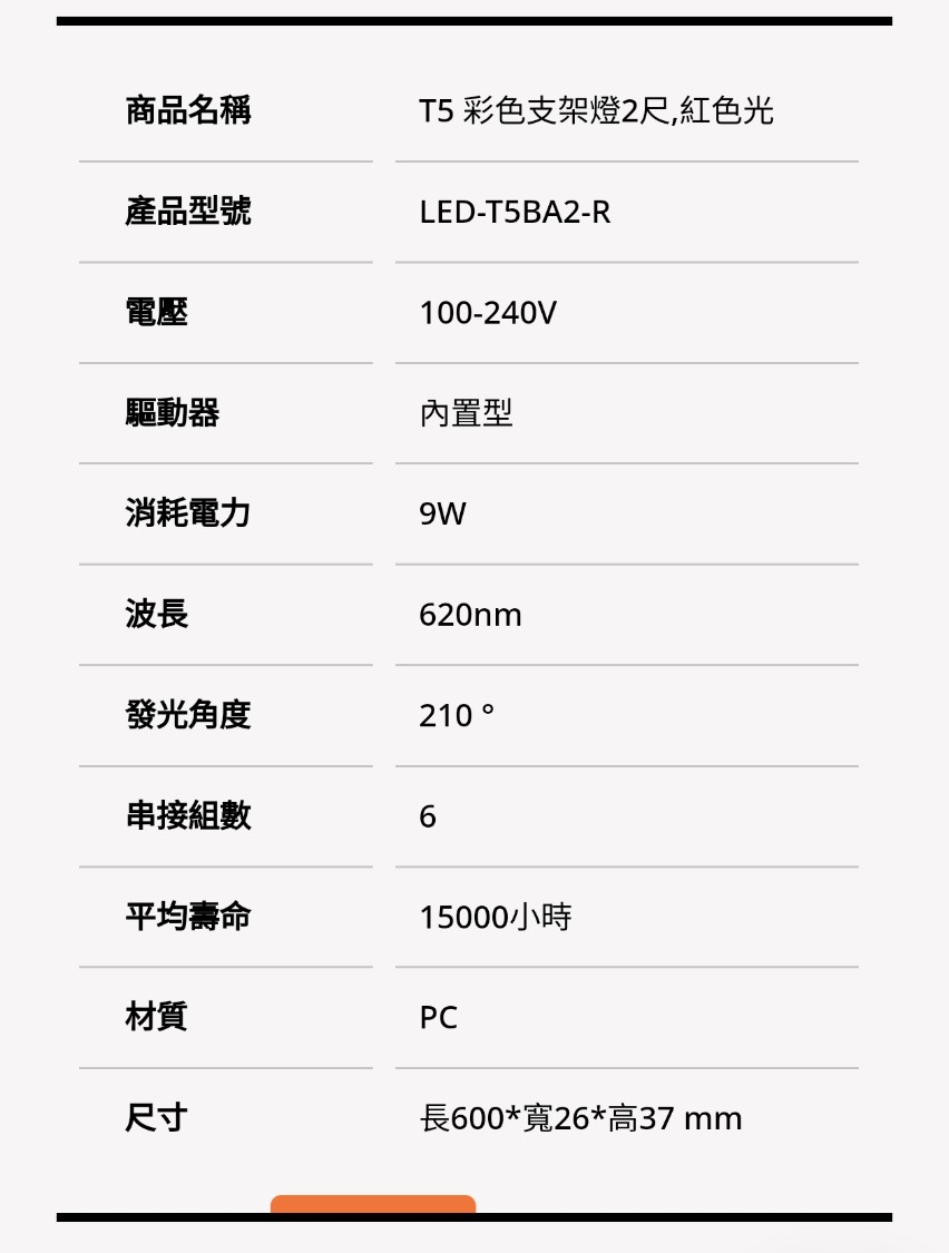 舞光 LED 紅光支架燈 LED-T5BA2-R