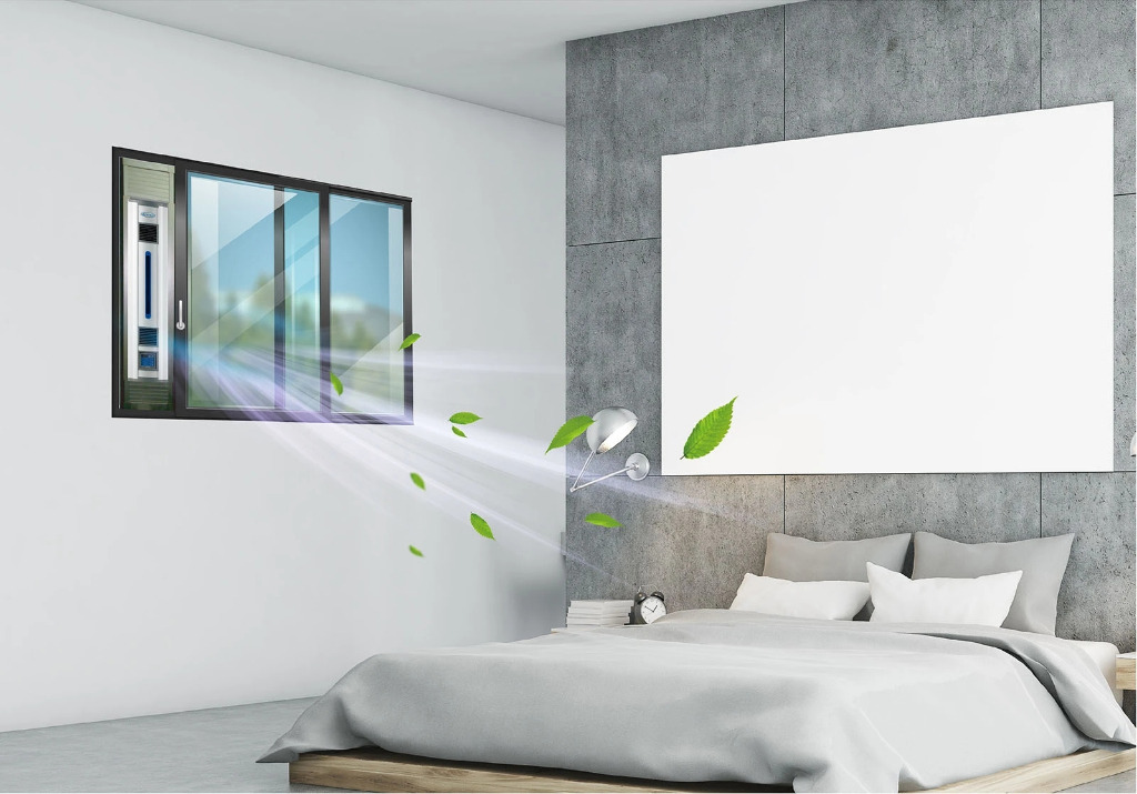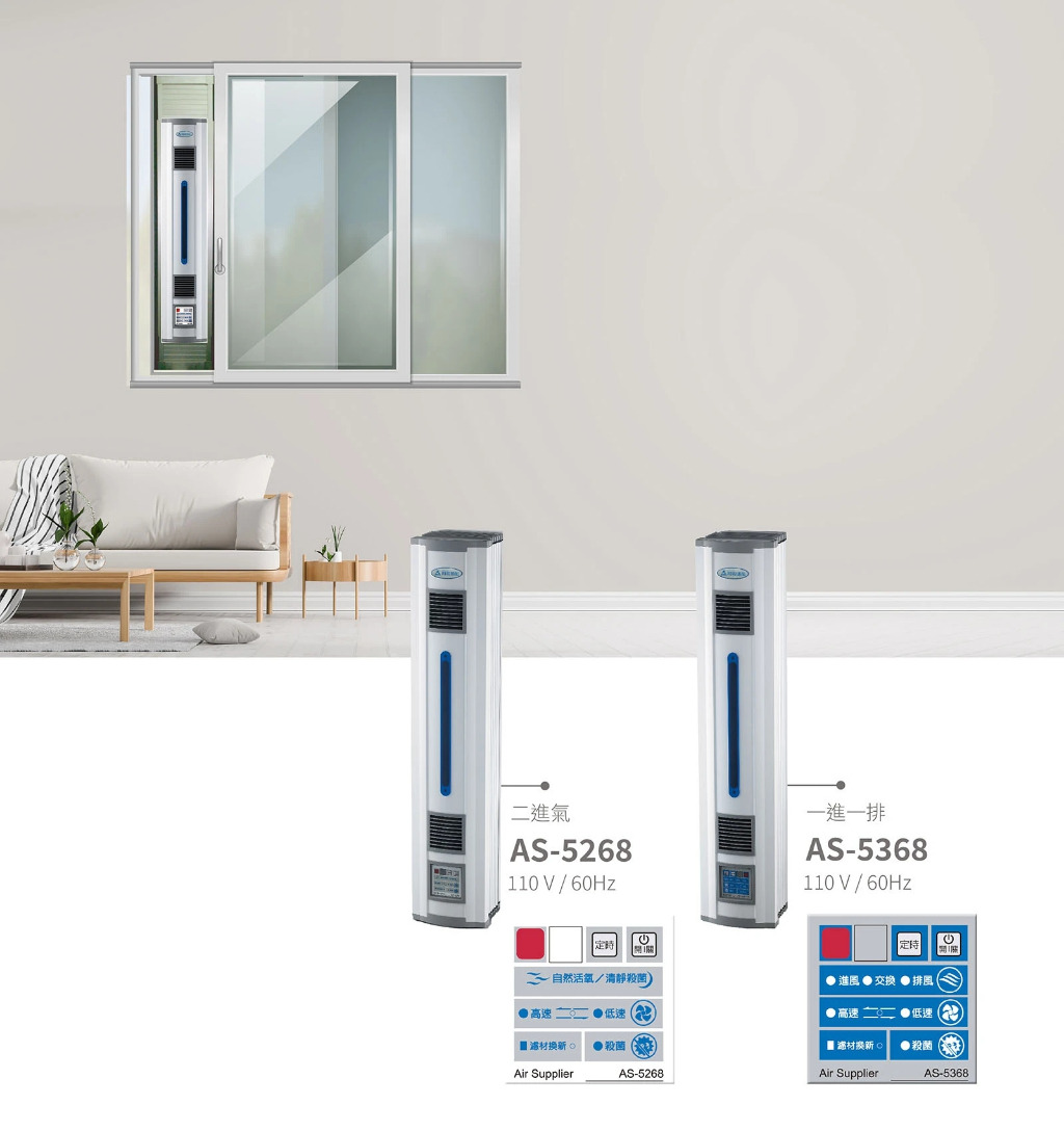 靜音運轉時不超過32dBA,讓你享受舒適安靜的睡眠;使用高效率運轉馬達,低功率,轉速強,超省電。本機具有等同鋁門窗之氣密效果,阻隔室外噪音。