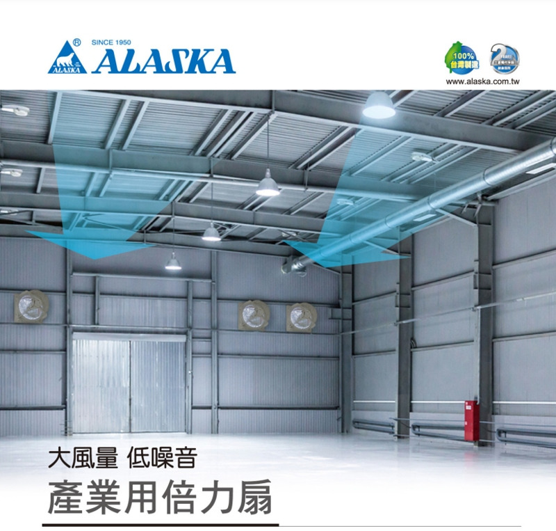ALASKA產業用倍力扇,本身擁有空氣進入型與排出型兩款,高穩定的機械導風結構、特殊倍力曲面扇葉,讓室內產生優異的空氣對流效果,可安靜並快速大量吸入、排出空氣,有效解決各空間、廠房、倉庫悶熱、通風不良、異味臭氣、粉塵、煙霧等各項問題,台灣三大電信機房與各區塊鍊礦場,皆不斷採用本系列產品,效果性能看的見。