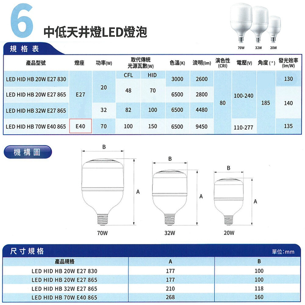 • 頂部聚光還設計,提高中心照度• 頂部聚光還設計燈泡(投射角度185°),一般燈泡(投射角度150°),非廣角燈泡(投射角度120°)• 廣角度設計,照亮範圍更廣,適合多種場合應用。• 中低天井LED燈泡具有LED光源高效節的特點 可以替代目前市場上的HID光源 節能高達50%-70%• 適用於戶外、夜市、擺攤等營業用燈