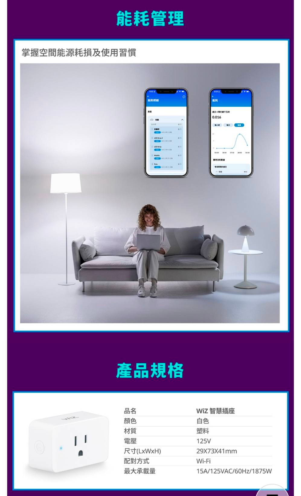 ■ 品名 : 【飛利浦PHILIPS】WiZ系列 Wi-Fi 智慧照明LED智慧插座-PW05N