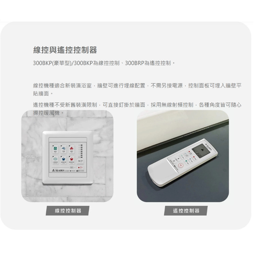 如要使用面板操控暖風機,家中浴室牆壁須預留管線才可安裝線控面板