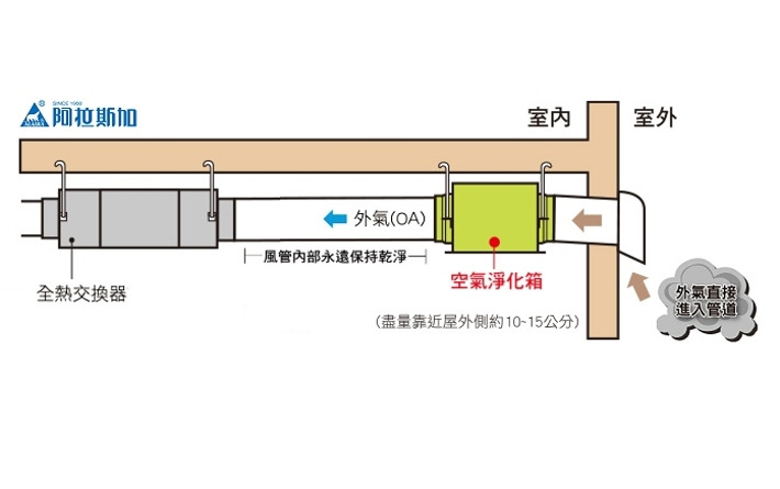 可阻止髒空氣進入室內以及預防灰塵沉積在風管內部,讓屋內有真正的新鮮外氣引入,確保良好的室內空氣品質。