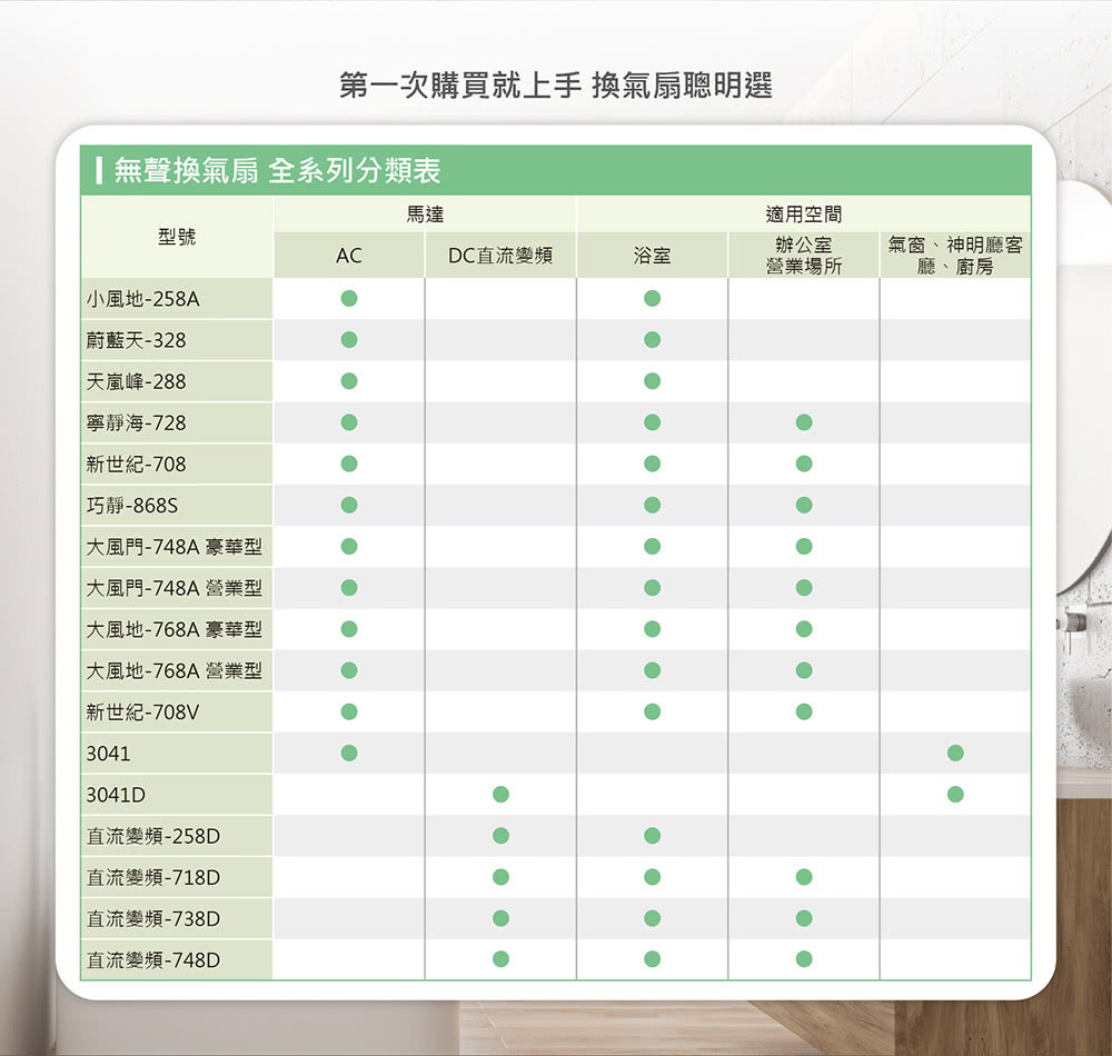 (4) 排出濕氣:排出浴室等處的濕氣,防止建材受損。