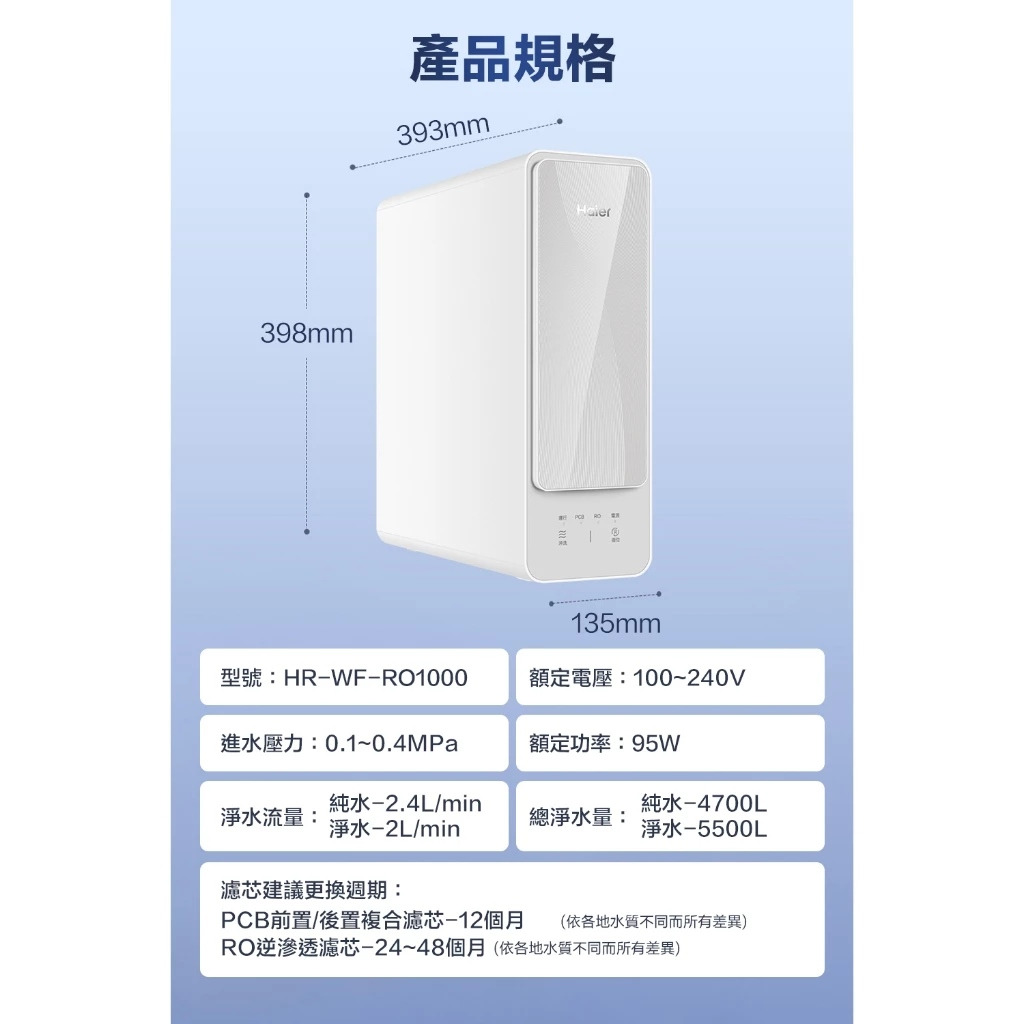 • 商品名稱:海爾RO淨水器1000G