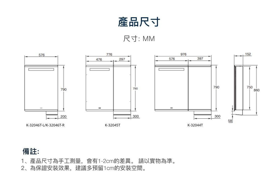 - 櫃體尺寸約為 576 × 152 × 790 mm (寬 × 深 × 高),符合多數一般浴室空間