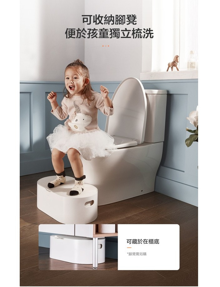 - 可收納腳凳,便於獨立洗漱,可藏於櫃底(需另購)