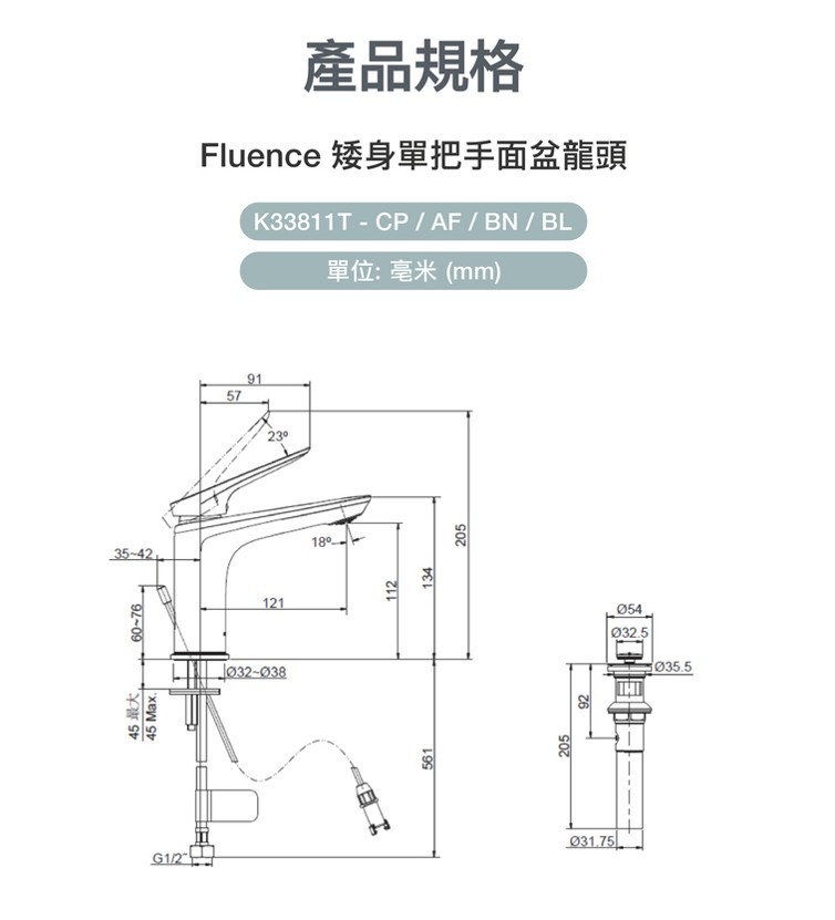 KOHLER 科勒 Fluence 檯面單槍龍頭 鉻色 33811T-4-CP 高雄永興生活居家館