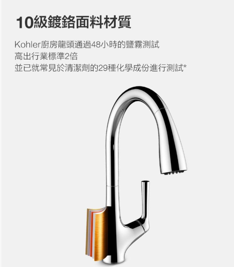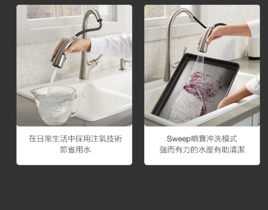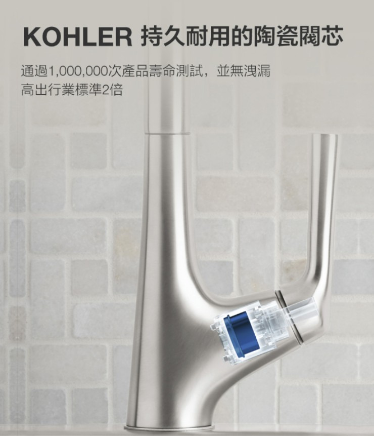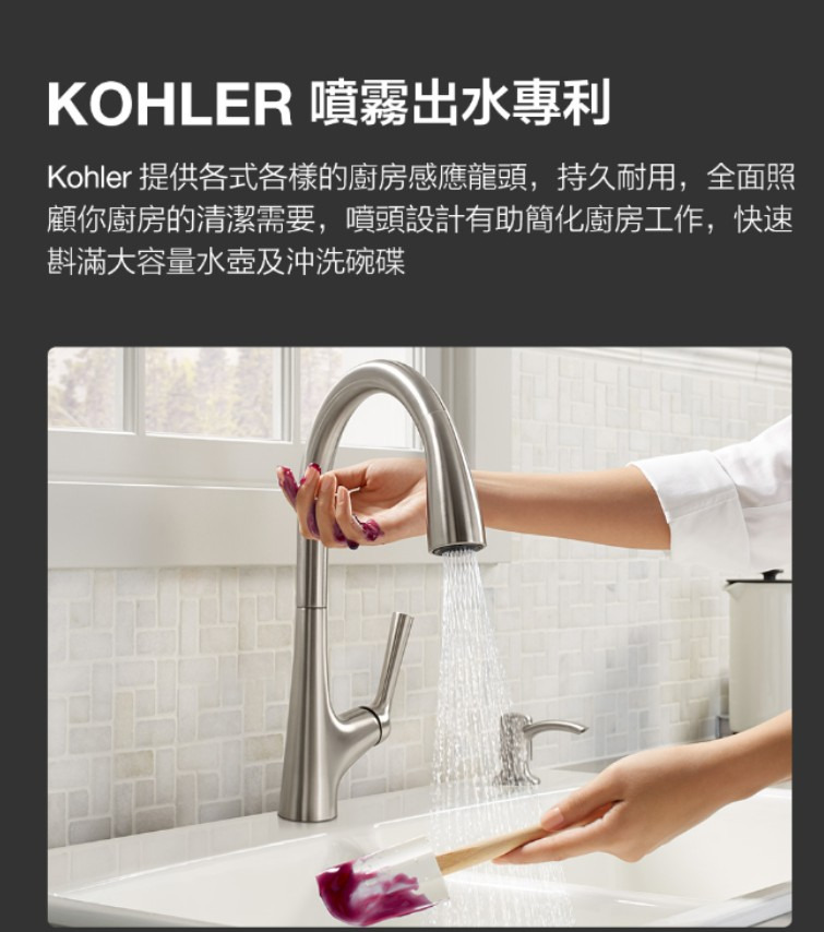 ●時尚無比的魅力: KOHLER MALLECO 廚房系列時尚實用,和無與倫比的工藝將美觀和功能融為一體,將為您的廚房增添一抹非凡的魅力。