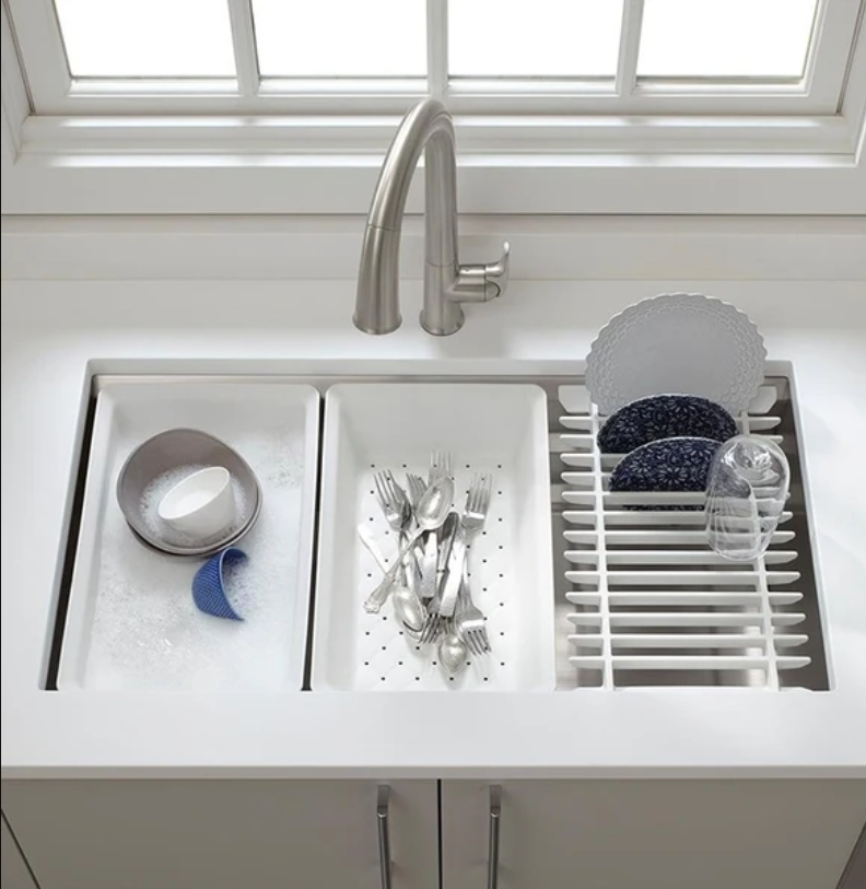 採用 KOHLER® Satin 塗層的廚房水槽,具有精湛的工藝和更好的抗劃痕性能