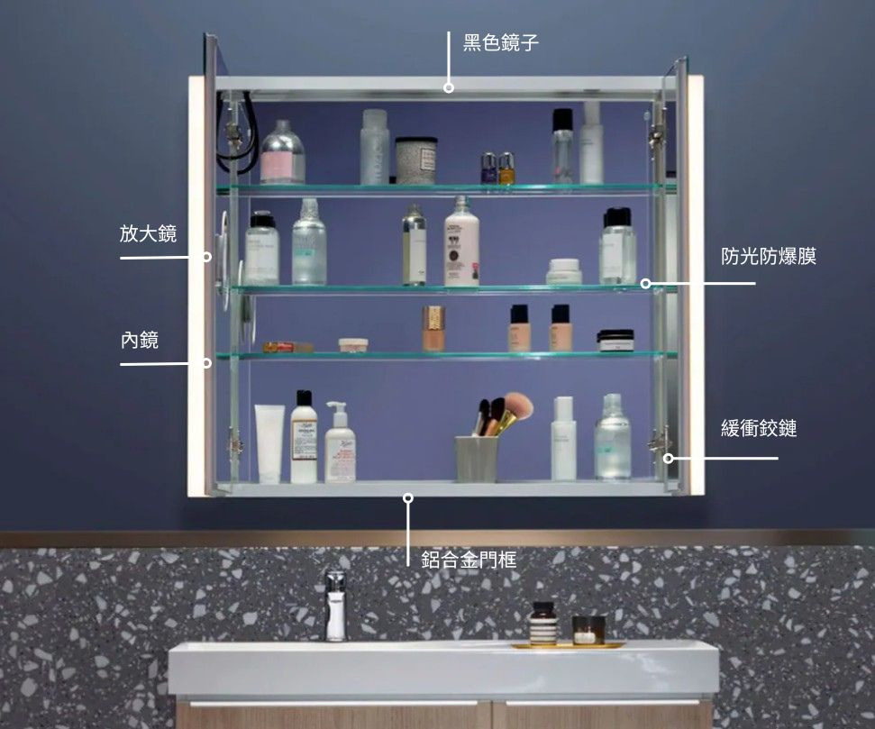 ▲本產品僅含鏡櫃本身,不包含示意用之瓶罐﹑飾品。