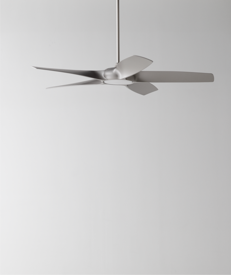 SILVERWING機身以刷鐵電鍍並以ABS葉片包覆馬達機身,讓產品的外型更顯出落,而為了打造風量更大風扇,透過設計將扇葉巧妙的增加弧形切削增加擊風面積,使吊扇運轉時能更高效率擴大空氣對流與循環的空間