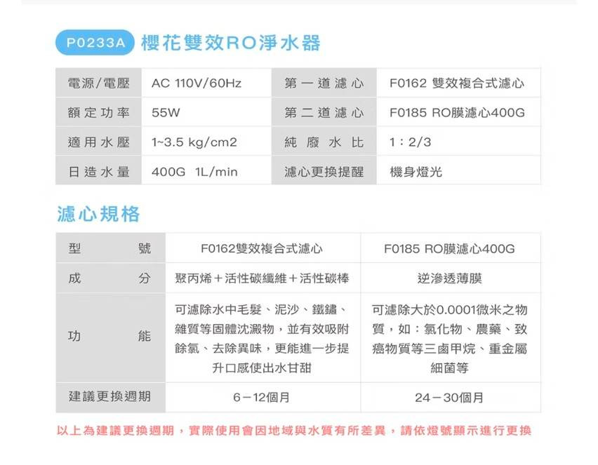 SAKURA 櫻花 P0233A RO淨水器