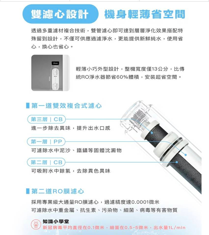 ◎ 雙濾心設計,機身更輕薄,更省空間