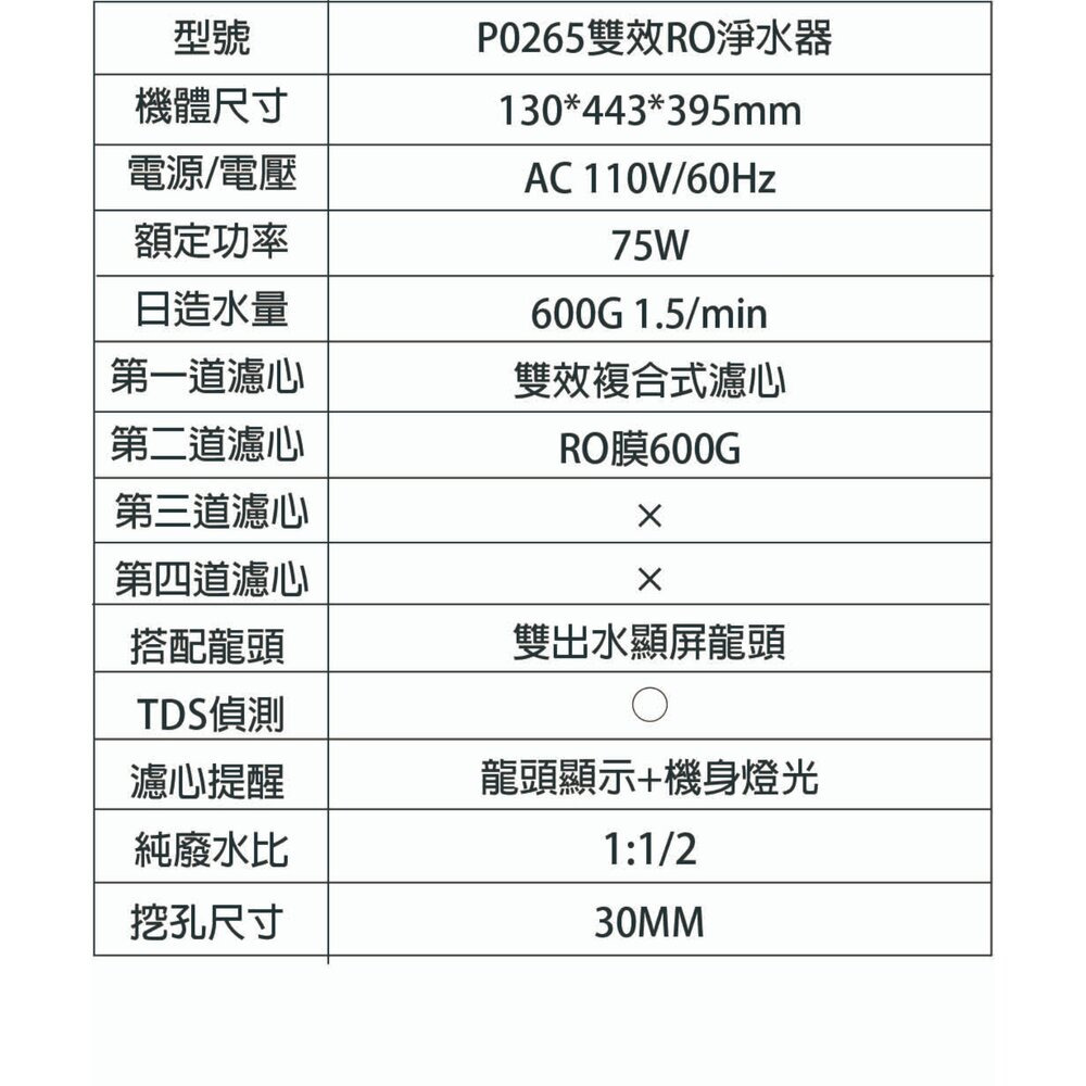 ◎ 配件包:3分/2分PE管、進水開關、鵝頸龍頭組、鵝頸吊片、排水閥、減壓閥、產品說明書、回函卡、維護卡