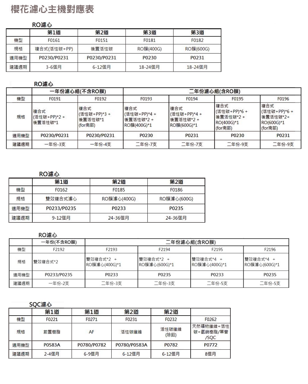 SAKURA 櫻花淨水器RO PCB濾心 F2192 F2193 F2194 F2195 P0531永興廚衛