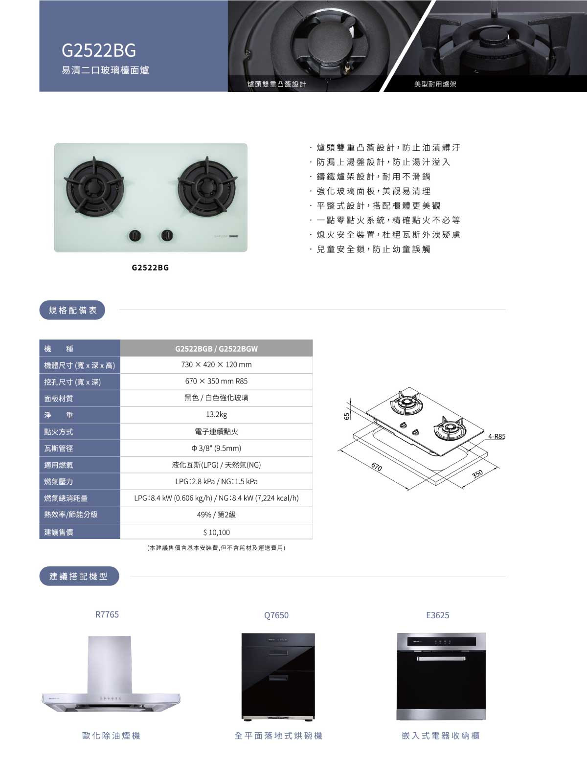 ▪ 爐頭雙重凸簷設計,防止油漬髒污▪ 防漏上湯盤設計,防止湯汁溢入▪ 鑄鐵爐架搭配,耐用不滑鍋▪ 點火針防護帽,點火不擔心▪ 黑色強化玻璃面板,美觀易清理▪ 平整化設計,搭配櫃體更美觀