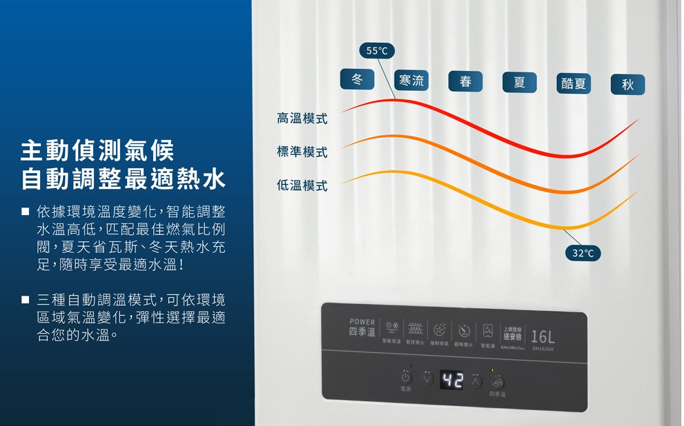 ▪ 三種自動調溫模式,彈性選擇最佳出水溫度