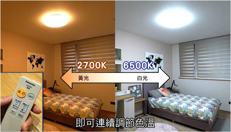 ◆調色: 黃光2700K ← 無段調色 → 白光6500K-RA83